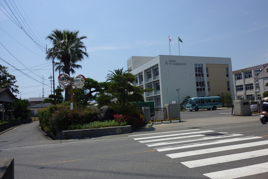 ★伊予農業高校★左奥に見えるタワーはJA5BGAクランプアップタワー・クワッド(トップ35mH 7〜28Mhz、2〜4ele)